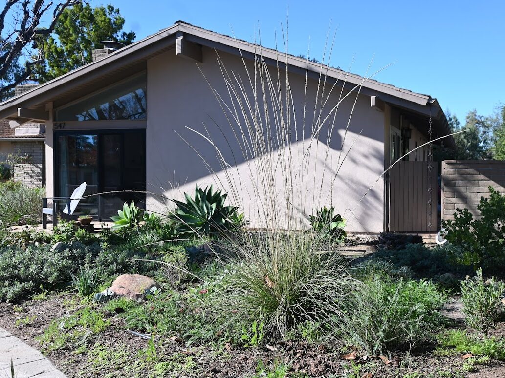 I recently spoke with Liz Barnitz, president and landscaping coordinator of a Santa Barbara homeowners association (HOA) board. Since earning her California Native Plant Landscaper Certification in 2024 through Santa Barbara Botanic Garden, Liz has championed the use of native plants, creative rainwater harvesting, and habitat for wildlife. Her love of gardening began in her father’s nursery. After retiring from her career as a school principal, she rediscovered that passion, though at first, she didn’t think much about native versus non-native plants. That perspective shifted after taking the Green Gardener class at Santa Barbara City College and later immersing herself in the Garden’s community. Through these experiences, she came to understand the unique needs — and the quiet magic — of native plants. For Liz, gardening is about learning by doing, embracing mistakes, and seeing each plot as an experiment. As she puts it, caring for native plants isn’t fundamentally different from other styles of gardening, but “getting to know their specific needs is rewarding.”